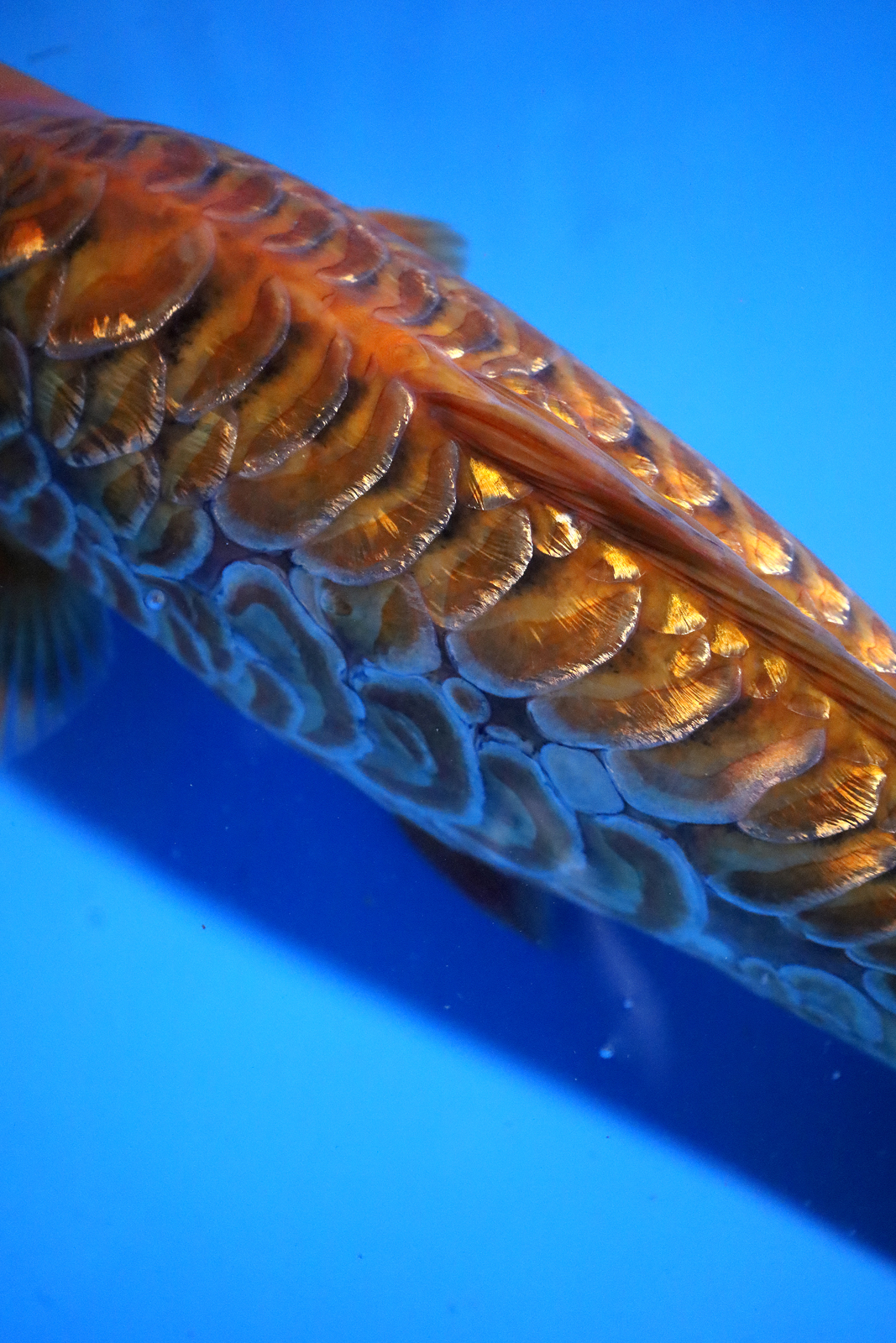 Aber am Ende dreht es sich immer um den Farbton, der einzigartig ist, der eine Farbpallette aufweist, die durch alle Bronzetöne geht, durch Orange, durch Mango und durch Ice Tea. Jede einzelne Schuppe ist ein Kunstwerk, und man kann fast endlos hinein zoomen. Es geht um ein kontrastreiches und extrem dicht gerichtetes Ginrin und ein mächtig stark ausgeprägtes Fukurin… und es geht natürlich um Body 😉